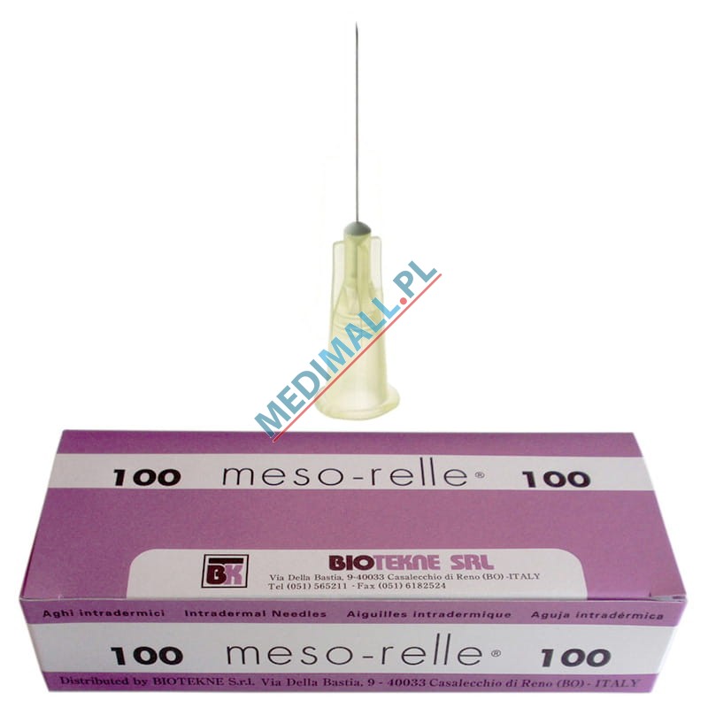 Produkcji włoskiej to gwarancja najwyżej jakości, potwierdzonej znakiem CE. Wykonane ze stali chirurgicznej, wielokrotnie ostrzone zapewniają bezbolesną iniekcję. Ostrze typu lancet zapewnia szybkie przebicie i rozepchnięcie tkanki co minimalizuje krwawienie i ślady po wkłuciu.Igły wstępują w różnych średnicach: 27G (0,4 mm), 30G (0,3 mm), 31G (0,26 mm), 32G (0,23 mm) i różnych długościach w zależności od przeznaczenia igły. Krótkie Meso Relle doskonale sprawdzają się przy mezoterapii igłowej, dłuższe natomiast idealnie sprawdzają się przy wypełniaczach, skleroterapii czy stomatologii.