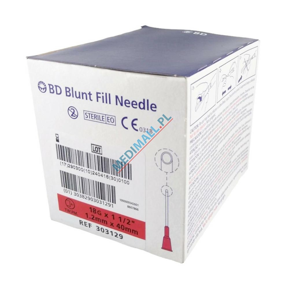 Igły do pobierania leków BD 1,2 x 40 18G BEZ FILTRA tępe ref. 303129 PROMOCJA (100 szt.)