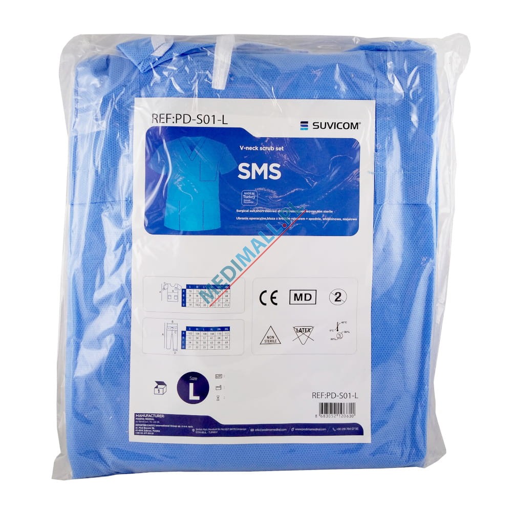 Komplet chirurgiczny z włókniny rozm. L SUVICOM NIEBIESKI ubranie operacyjne bluza z krótkim rękawem + spodnie