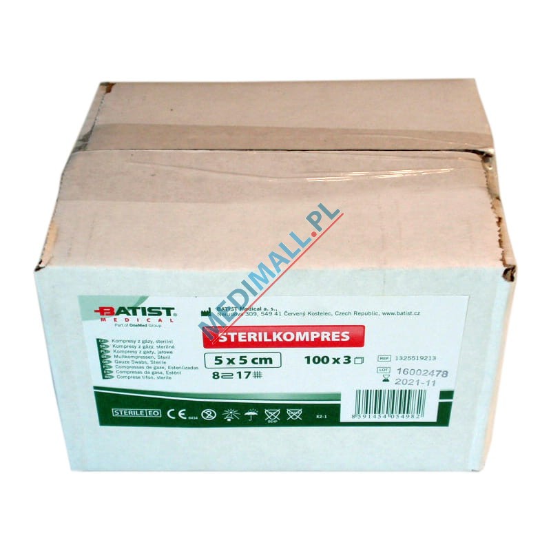Kompresy gazowe JAŁOWE 17N 8W 5x5cm STERILKOMPRES (100blist x 3szt) PUDEŁKO