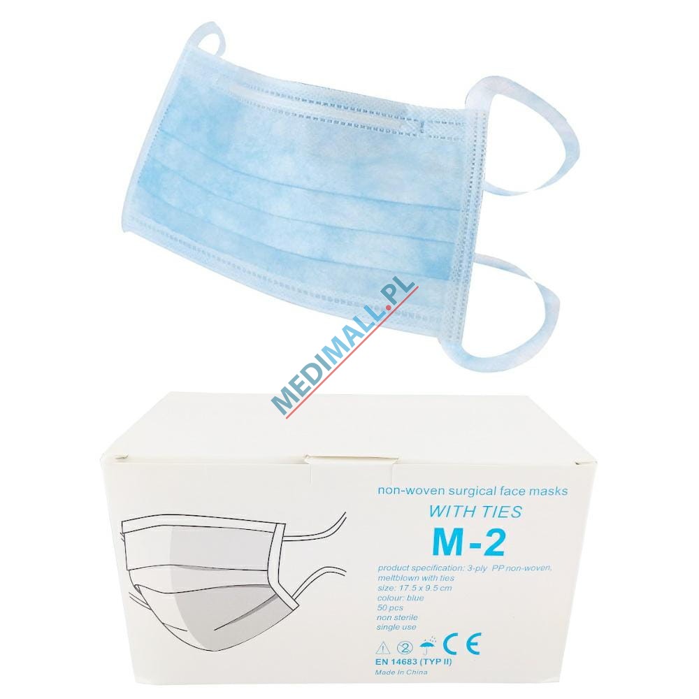 Maseczki chirurgiczne NA TROKI typ II (50 szt.) SUNSMED NIEBIESKIE włókninowe 3-warstwowe