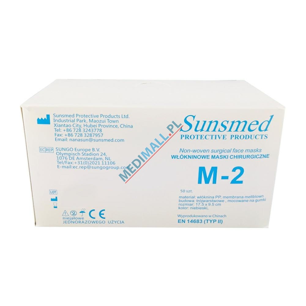 Maski chirurgiczne trójwarstwowe medyczne Sunsmed typ II 50 szt. na troki