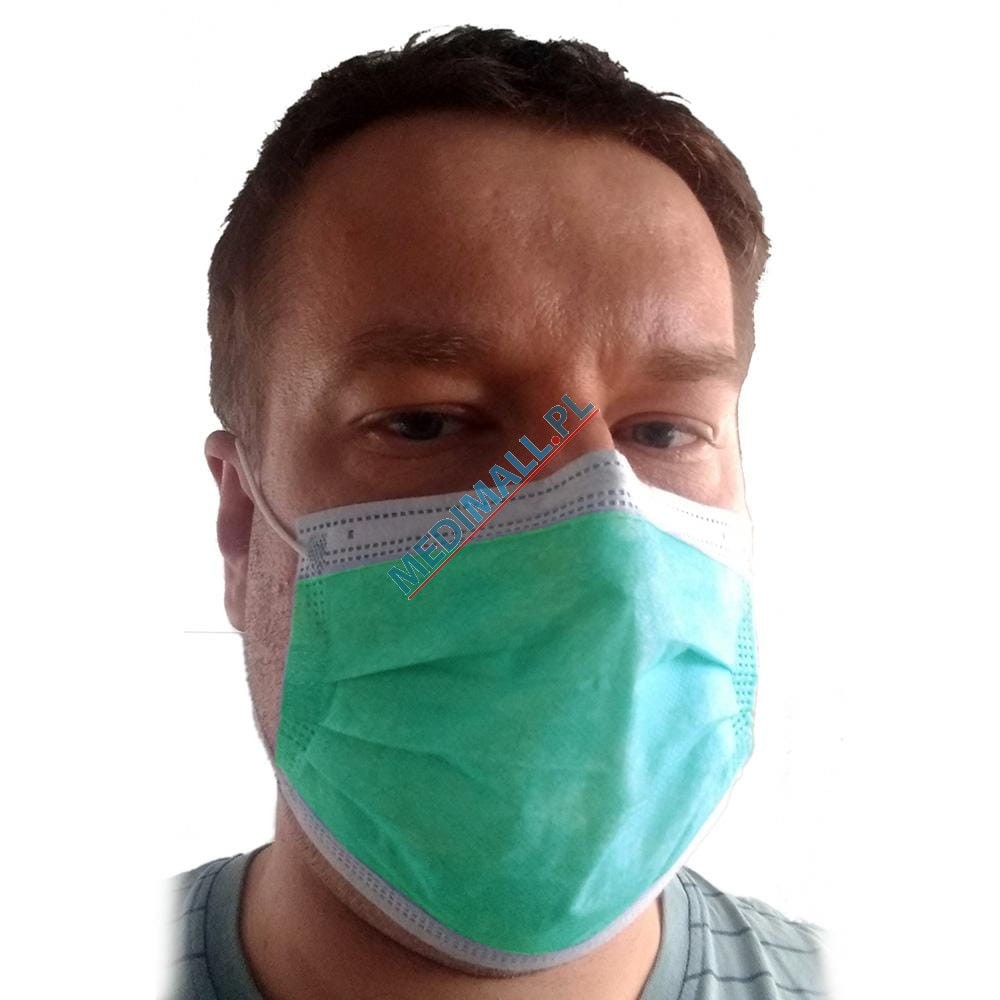 Maski chirurgiczne trójwarstwowe medyczne BETATEX zielone z włókniny z gumkami 50 sztuk