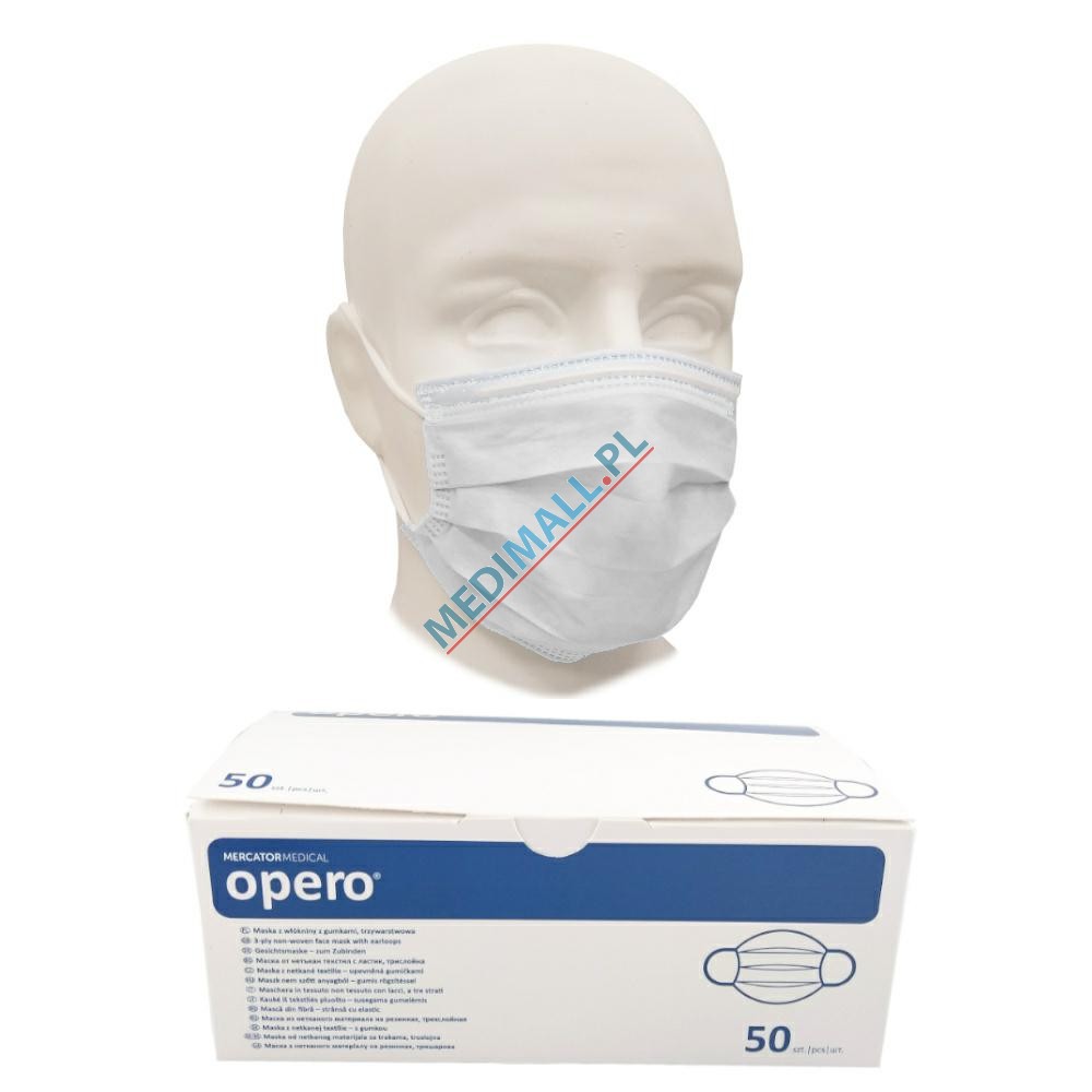 Maseczki chirurgiczne z GUMKAMI typ II (50 szt.) BIAŁE OPERO MASK włókninowe 3-warstwowe