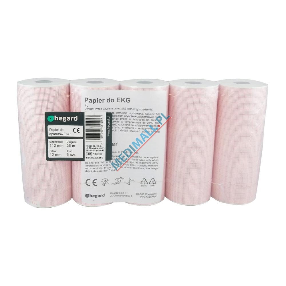 Termiczny papier rejestracyjny do aparatów EKG firmy Hegard, modele Ascard- A4/B56/Mr Blue/Mr Silver/Mr Grey. Wymiary papieru to 112 x 25. Rolka o długości 25 m, kratka.Zastosowanie: Ascard- A4 / B56 / Mr Blue / Mr Silver / Mr Grey