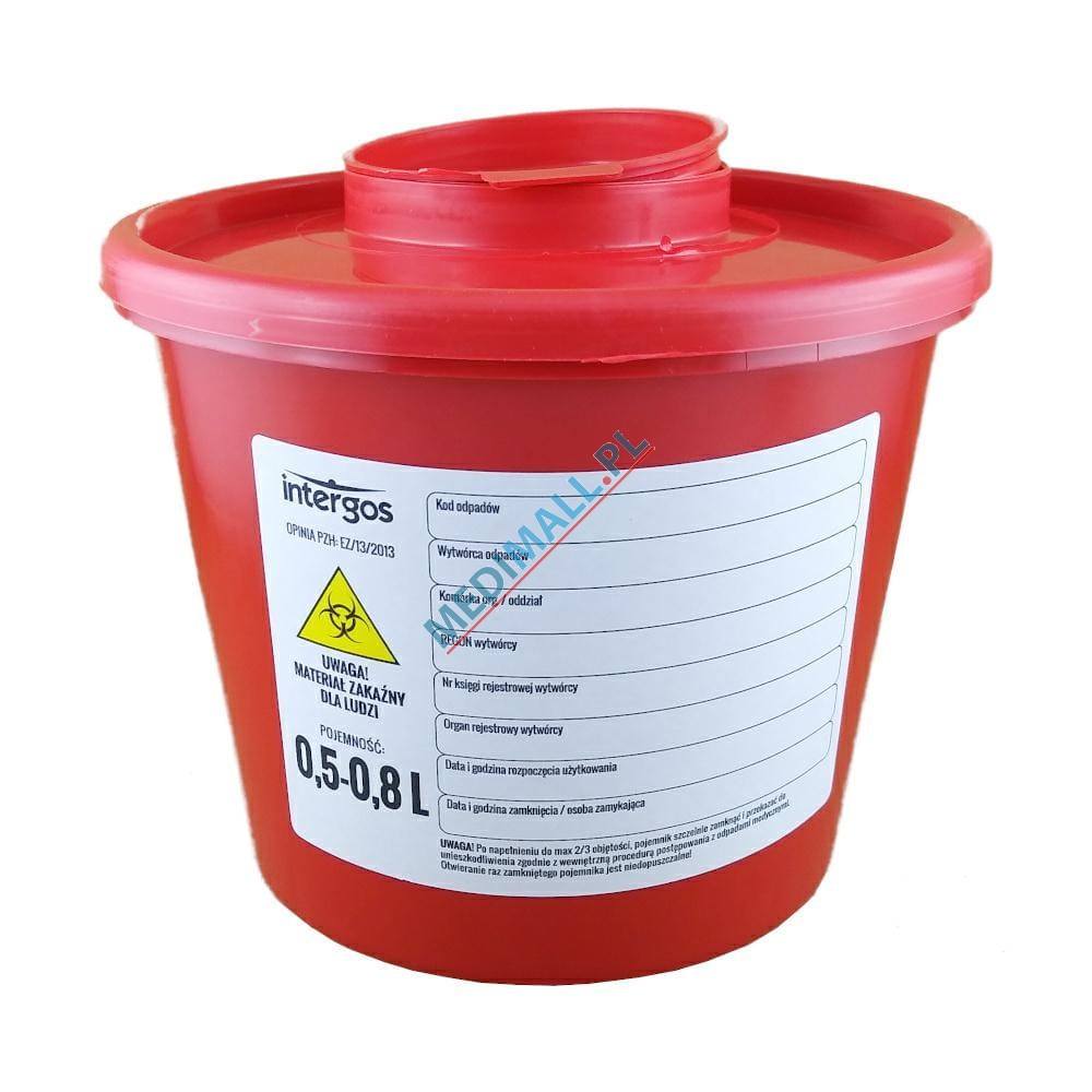 Pojemnik na odpady medyczne 0,5-0,8L (0,7L) INTERGOS CZERWONY