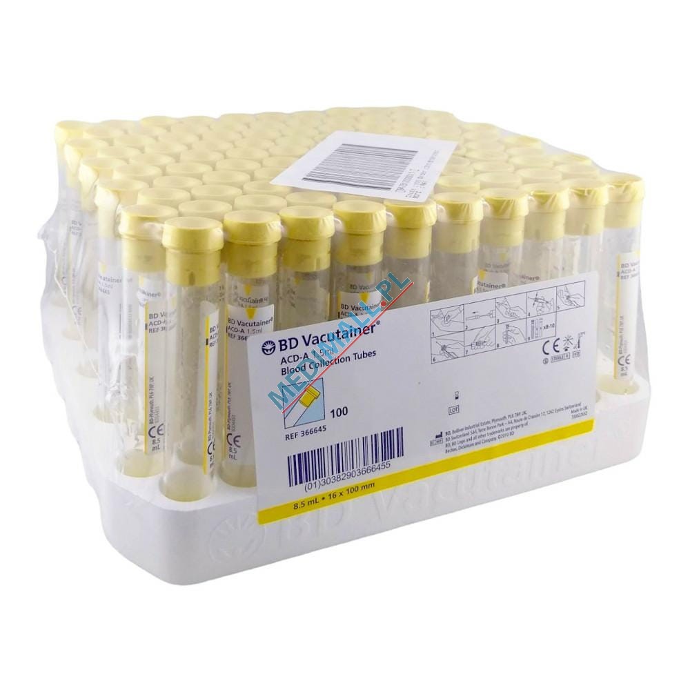 Probówki do konserwacji erytrocytów z ACD roztwór A 8,5ml BD VACUTAINER 16 x 100mm SZKŁO korek żółty Tradycyjny ref. 366645 (100szt.)
