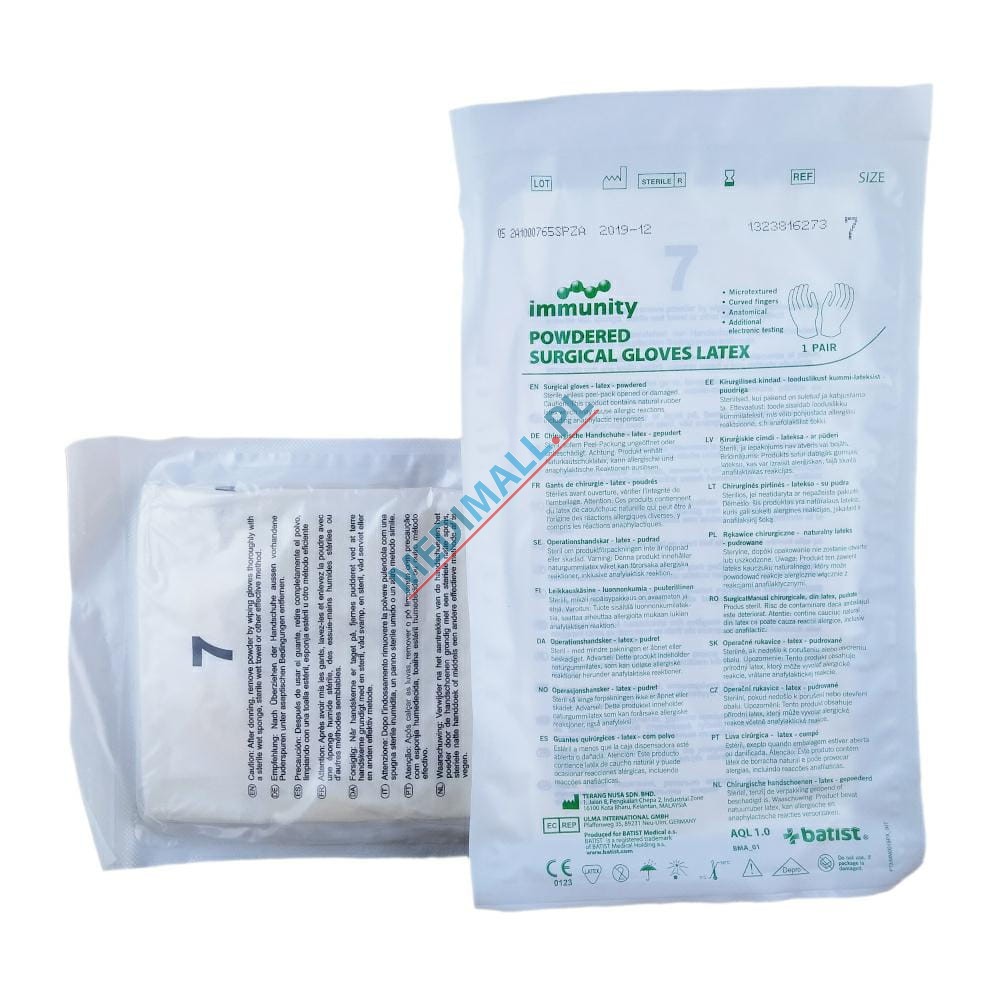 Rękawiczki chirurgiczne IMMUNITY 7,0 PUDROWANE lateksowe jałowe