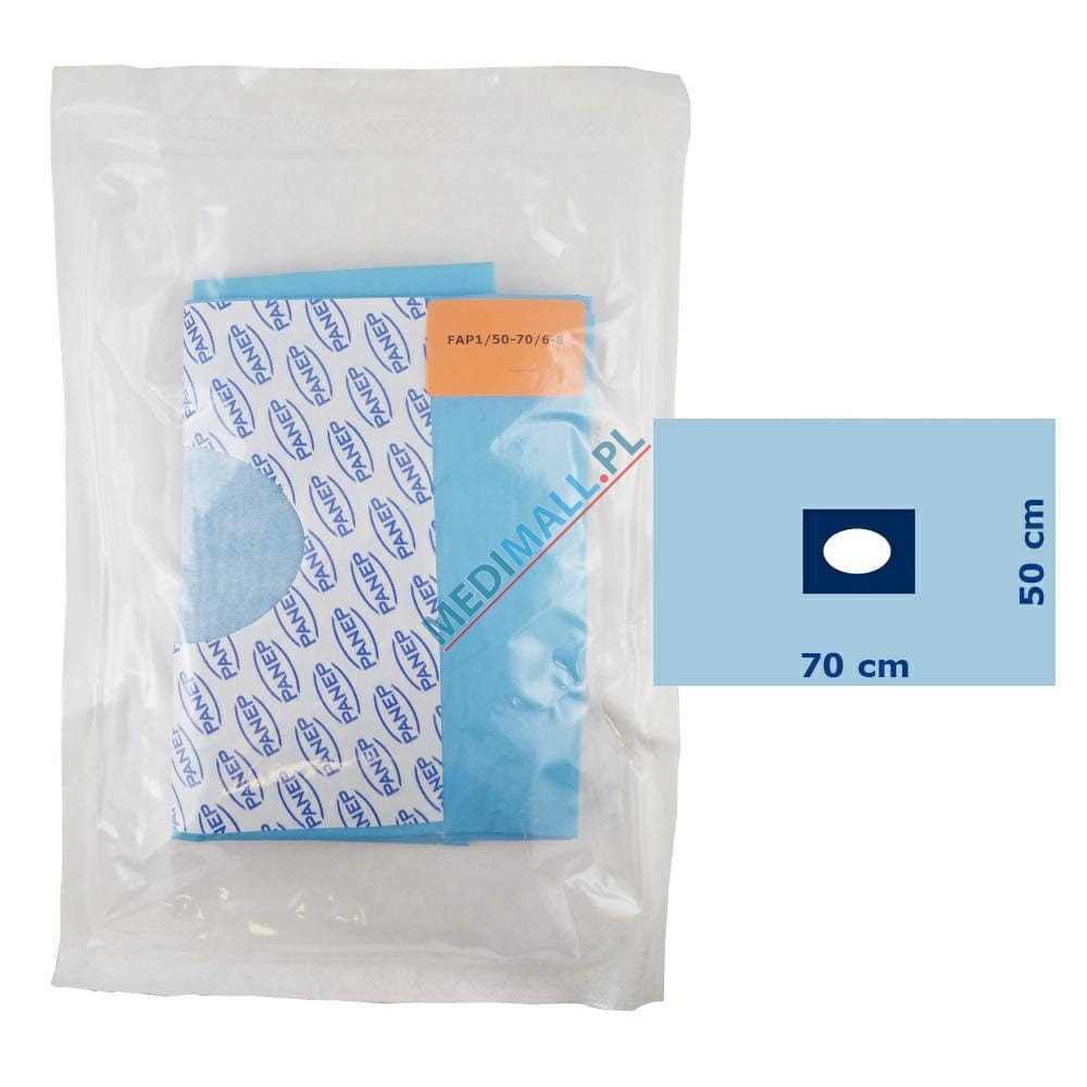 Operacyjna, jałowa serweta barierowa zabezpieczająca pole operacyjne. Pakowana sterylnie w blister papier-folia. Serweta posiada przylepny otwór owalny o rozmiarze 6x8 cm.Właściwości: