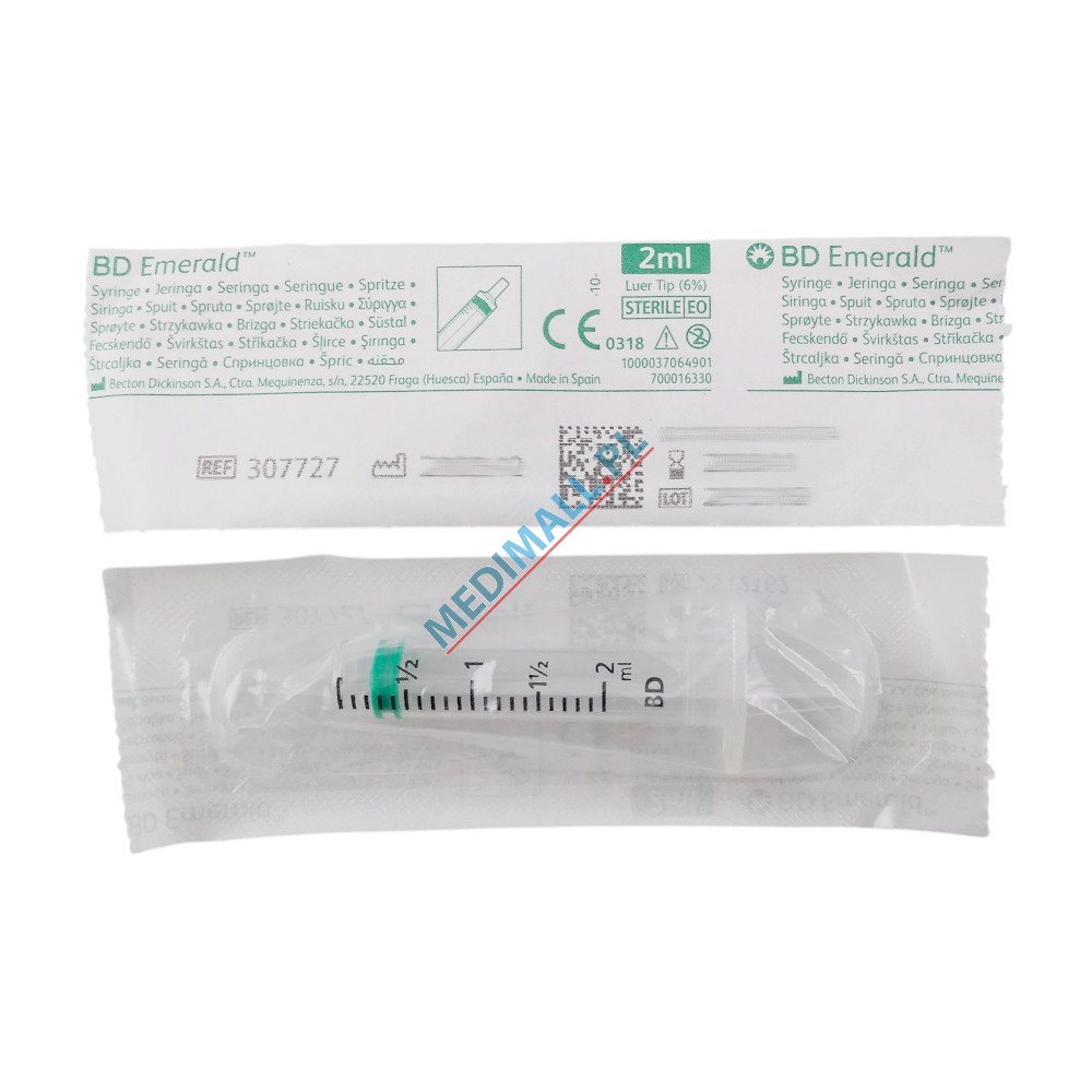 Strzykawki 3-częściowe BD EMERALD 2ml Luer Slip ref. 307727 (100 szt.)
