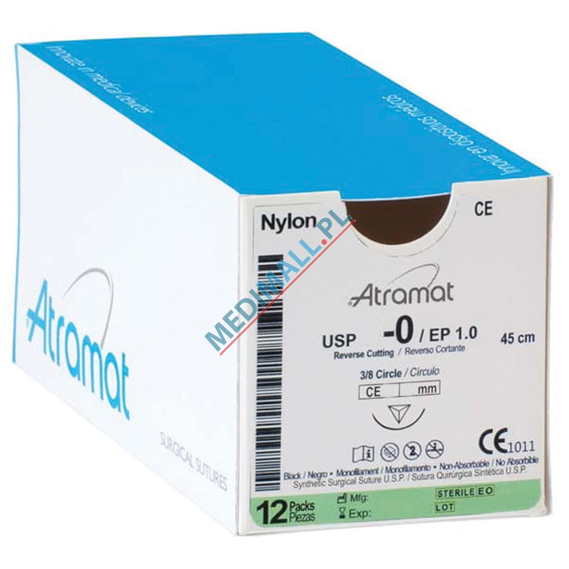 Szwy ATRAMAT NYLON 0 CE24 dł.75cm igła 3/8 koła odwrotnie tnąca ref. CE2441-75N (12 szt.)
