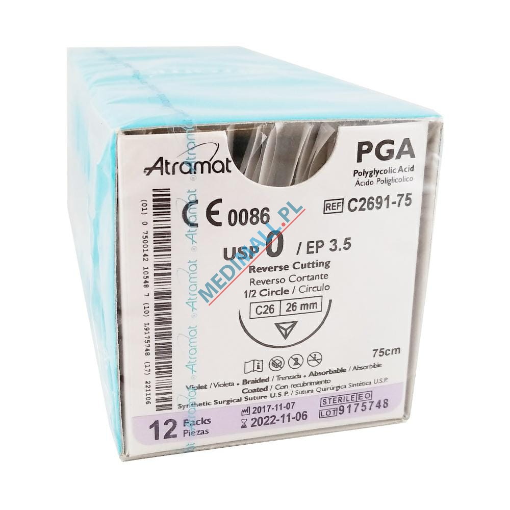 Szwy ATRAMAT PGA 0 C-26 długość 75cm igła 1/2 koło odwrotnie tnąca ref. C2691-75 (12 szt.)