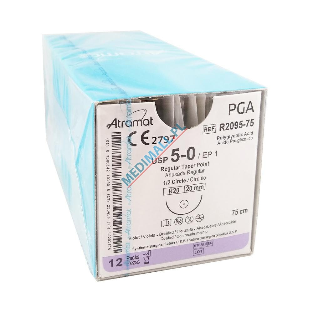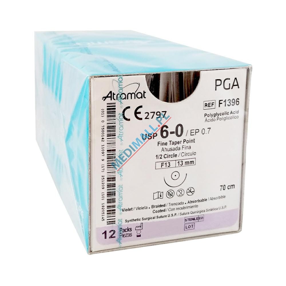 Szwy ATRAMAT PGA 6/0 F-13 długość 70cm igła 1/2 koło okrągła ref. F1396 (12 szt.)